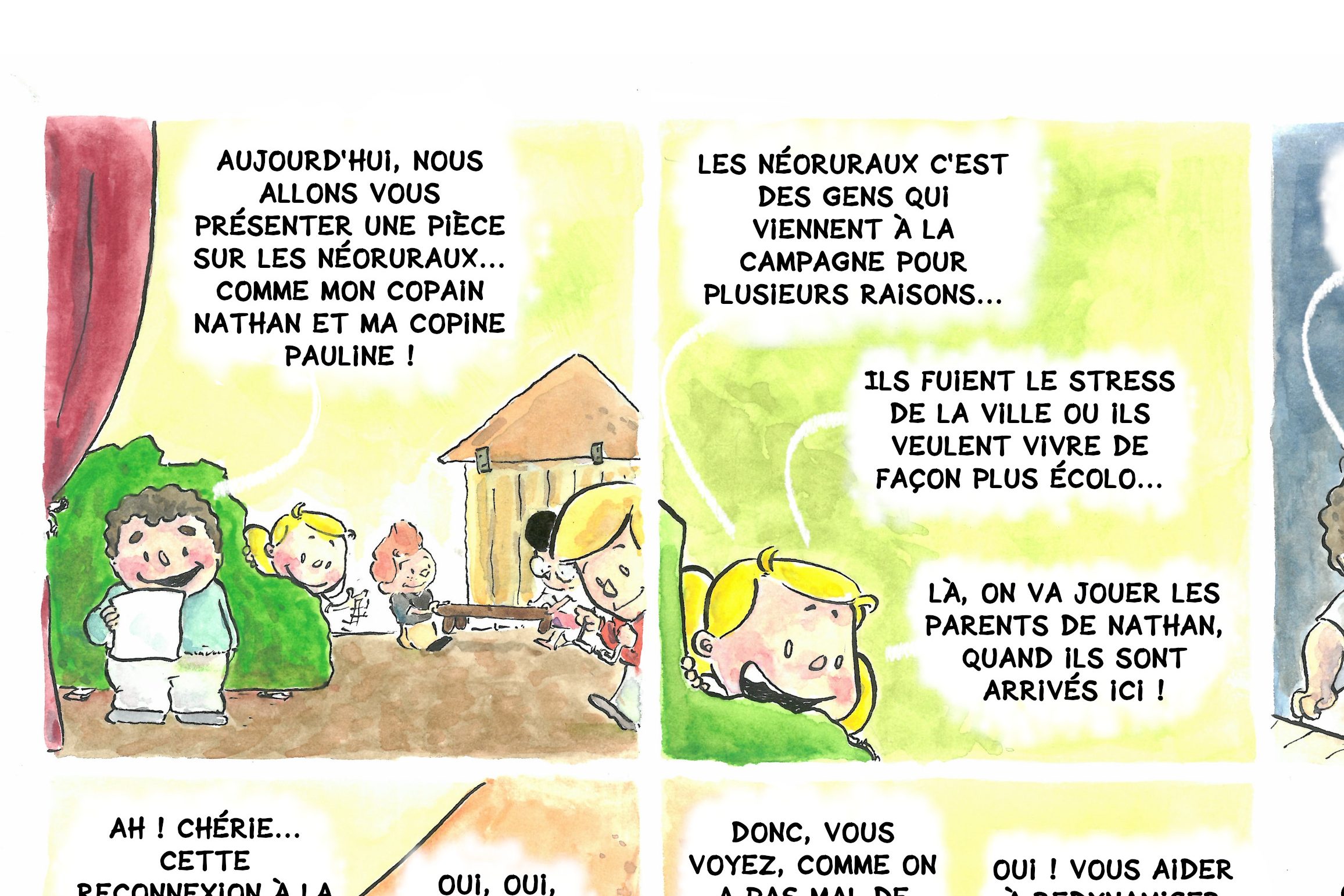 Nathan, Loïc, Esther sont des enfants de néoruraux. Ils rencontrent Pauline, Juliette, Baptiste, qui deviennent leur supers copains. Ensemble ils s’interrogent sur la nature, l’environnement et les pratiques écolos de leurs parents.